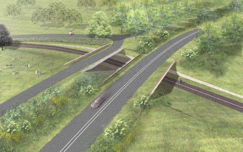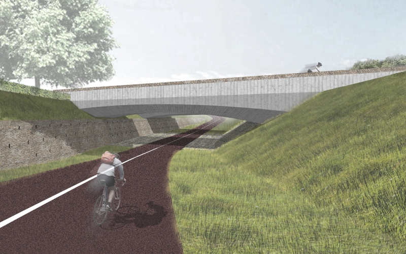 Voor dit project ben ik de samenwerking aangegaan met architect Ad Roefs voor het ontwerp van de kunstwerken en Poelmans Reesink Landschapsarchitectuur voor de ondersteuning bij het maken van visualisaties. Gewonnen? Nee, helaas niet. Wel de tweede plaats bij de ENVI-score behaald. Een mooi plan is -in dit geval- een te duur plan.